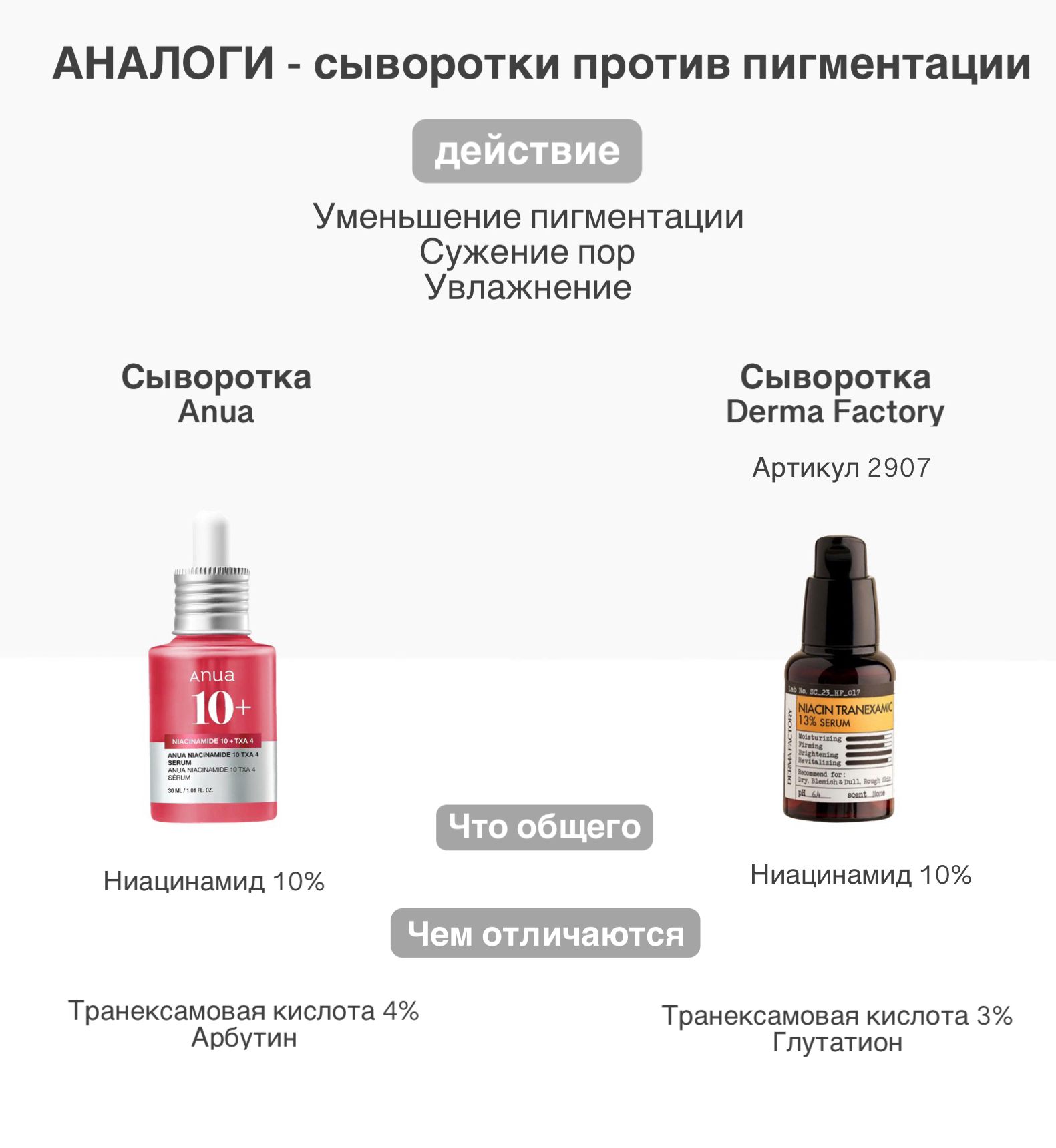 Примеры сочетаний этих средств с другими активами и компонентами в уходе против пигментации, расширенных пор, морщинок, для повышения упругости кожи и выравнивания рельефа, можно найти прямо в карточках этих товаров.