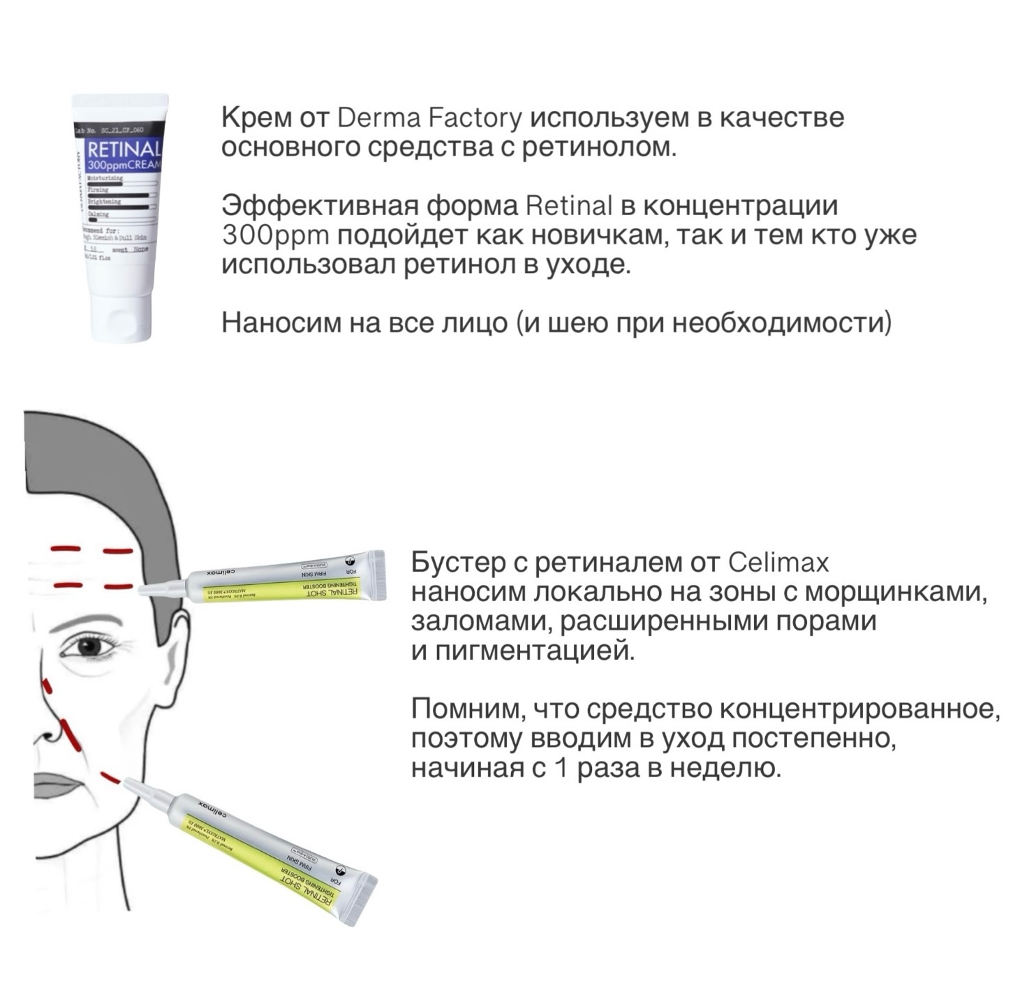 Также локально на участки с расширенными порами, пигментацией и морщинками можно наносить бустер с ретиналем от Celimax: