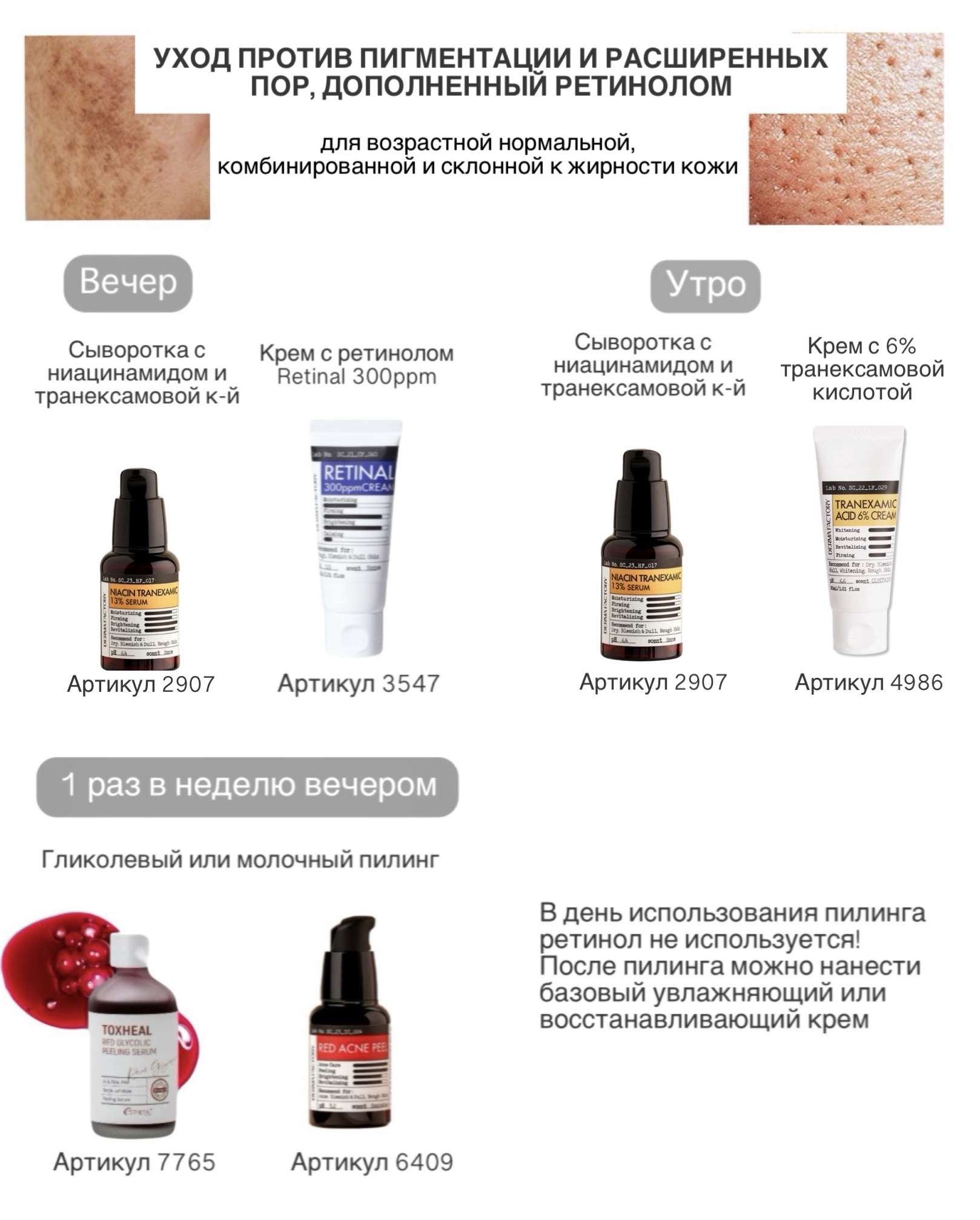 то лучшее сочетание в уходе: ретинол + транексамовая кислота + кислотные пилинги
