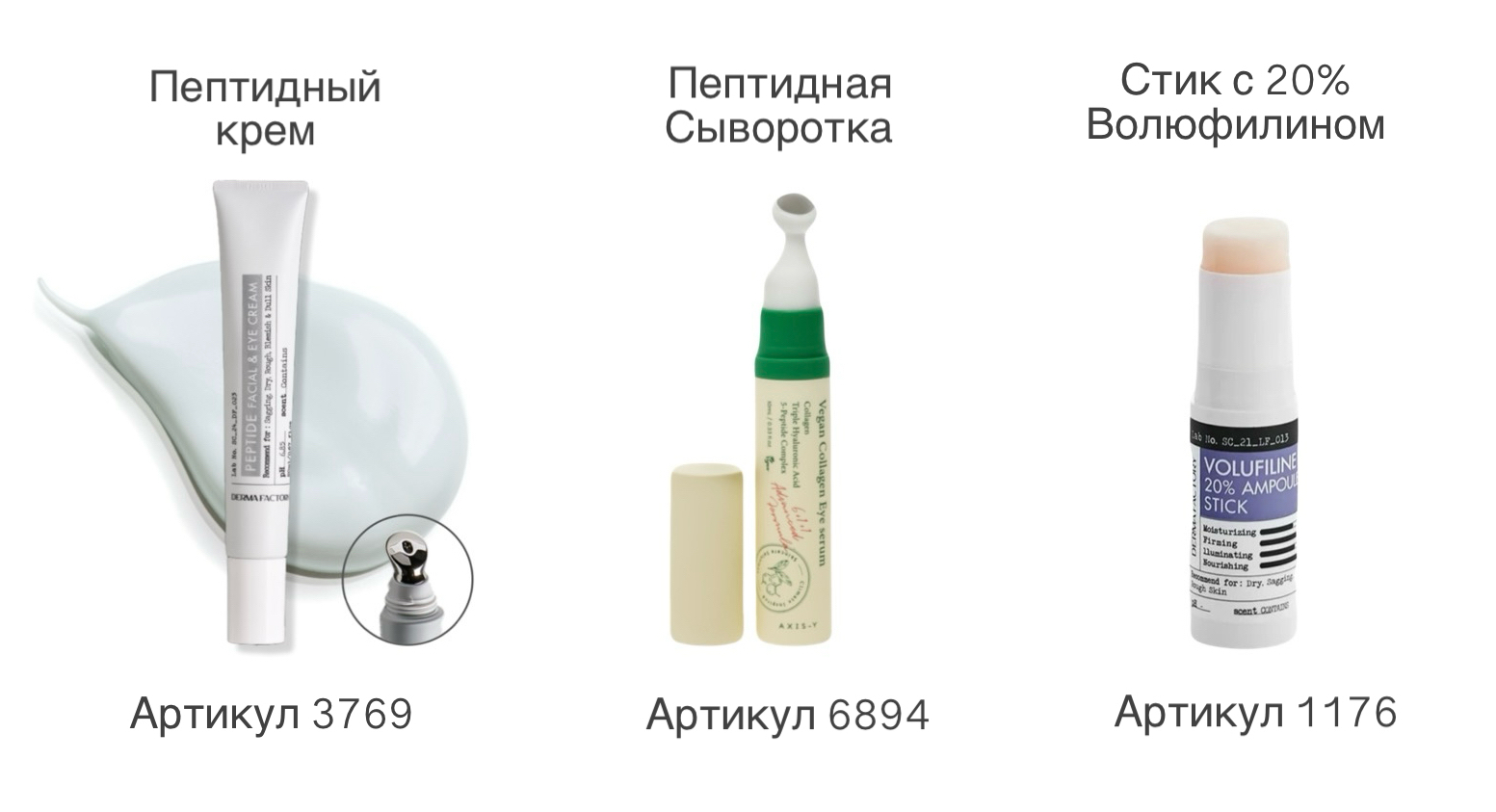 Если Вы используете уход без ретинола, сочетайте средства с пептидами, волюфилином - против морщин, и средства с пептидами и транексамовой кислотой - против морщин и пигментации.