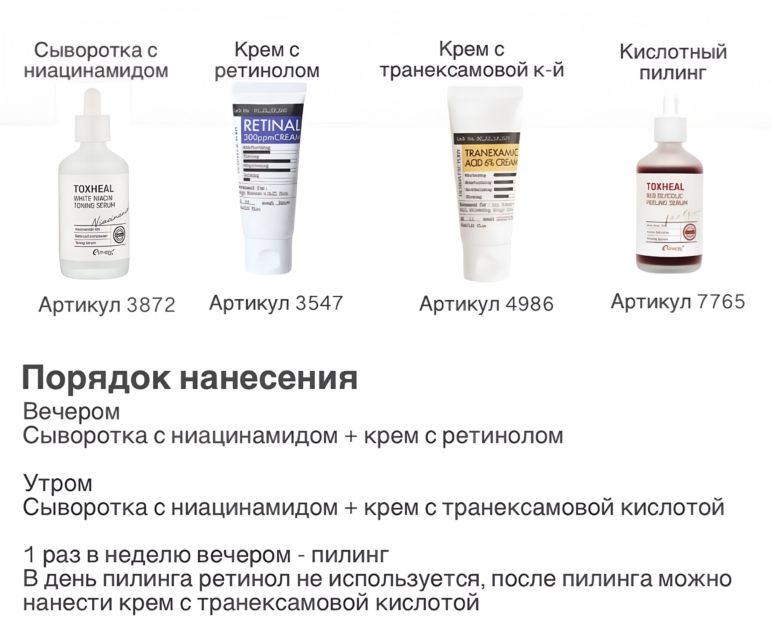ПРИМЕРЫ УХОДА ПРОТИВ ПИГМЕНТАЦИИ С РЕТИНОЛОМ: