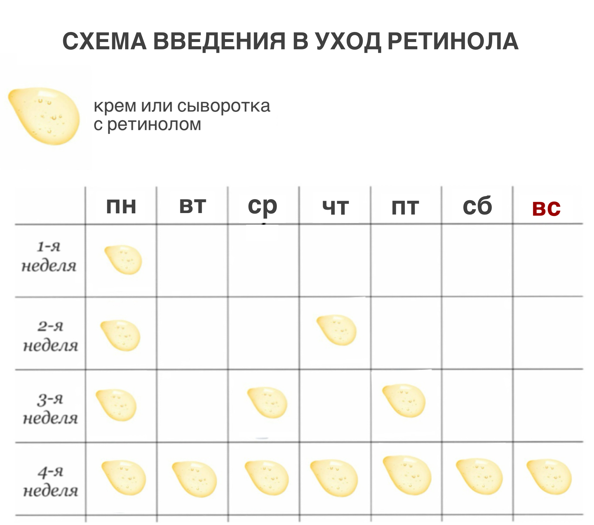 - Наносить средства с ретинолом действительно первое время лучше на сухую кожу - так вы замедлите интенсивность проникновения молекул ретинола и уменьшите риск раздражения.