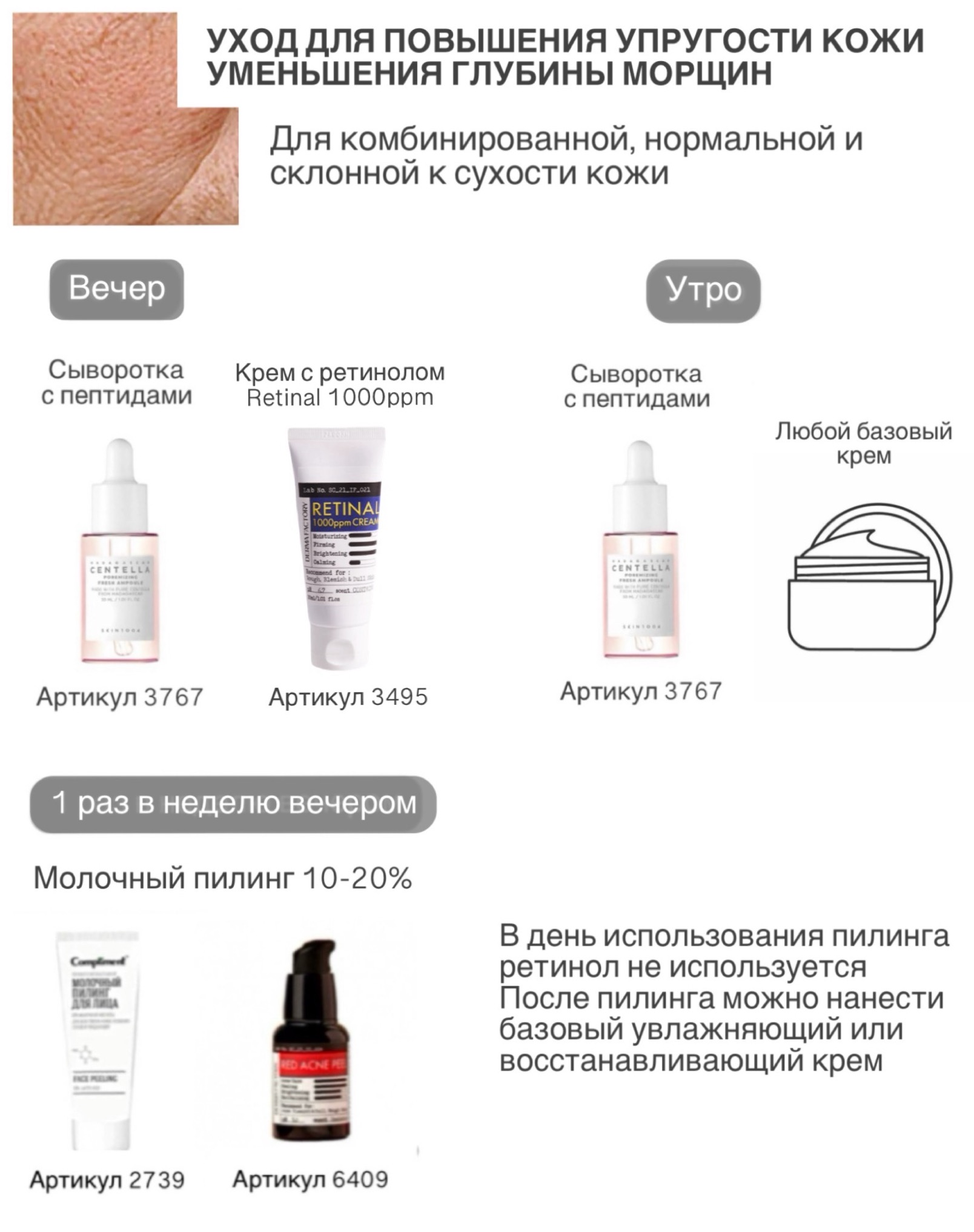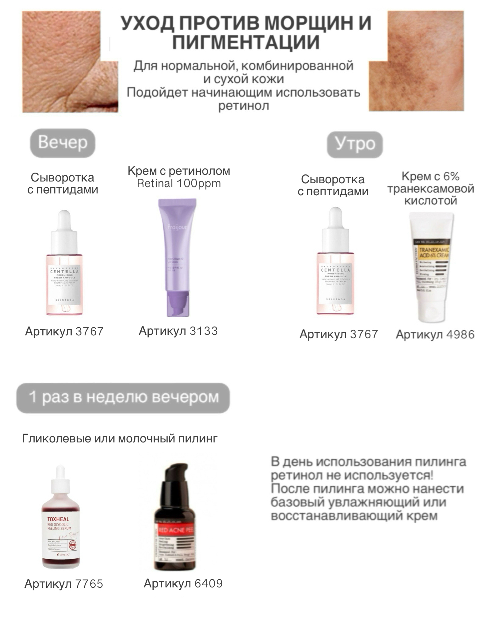 Сыворотку можно сочетать со всеми активами, наиболее эффективные сочетания и примеры ухода ниже: