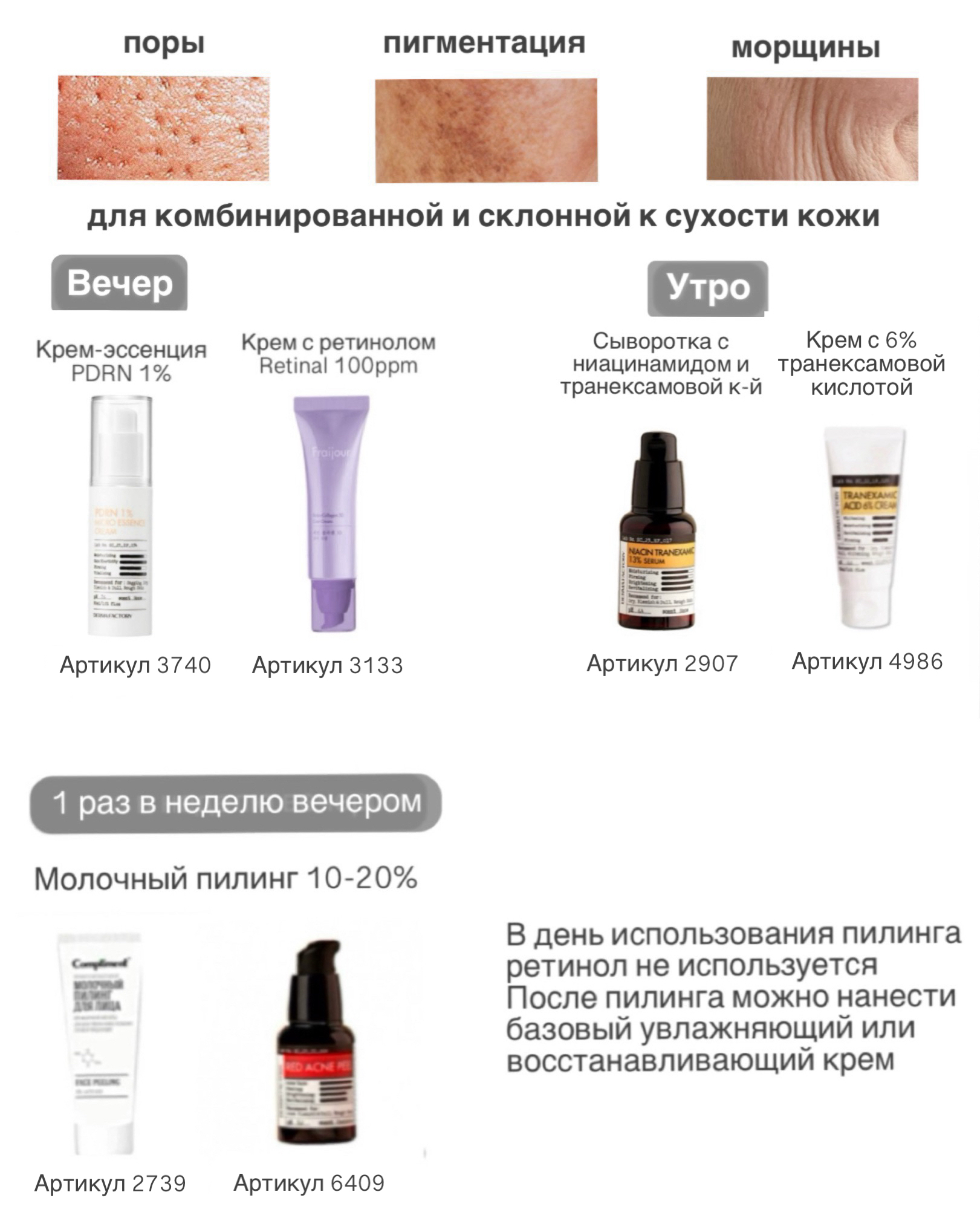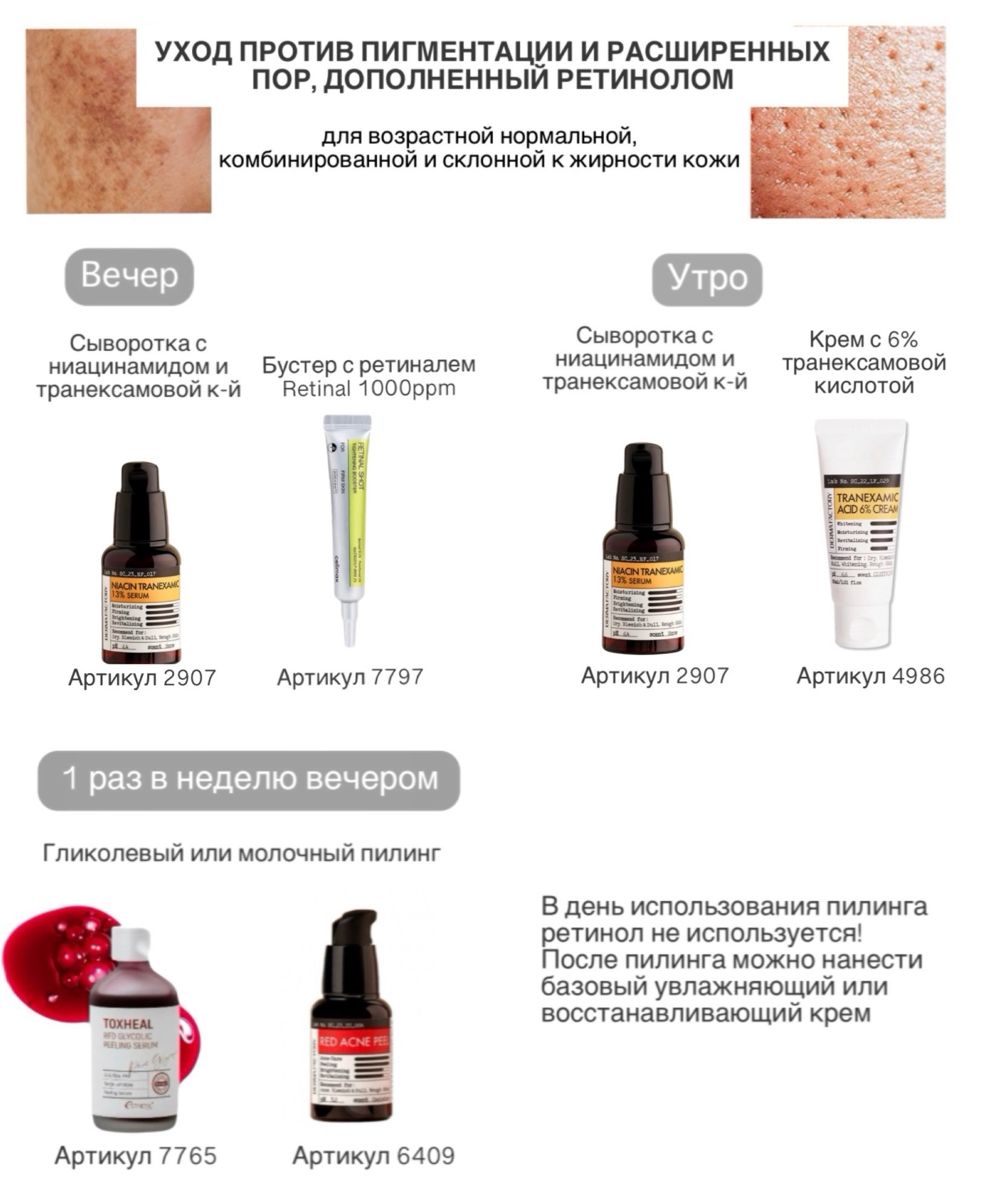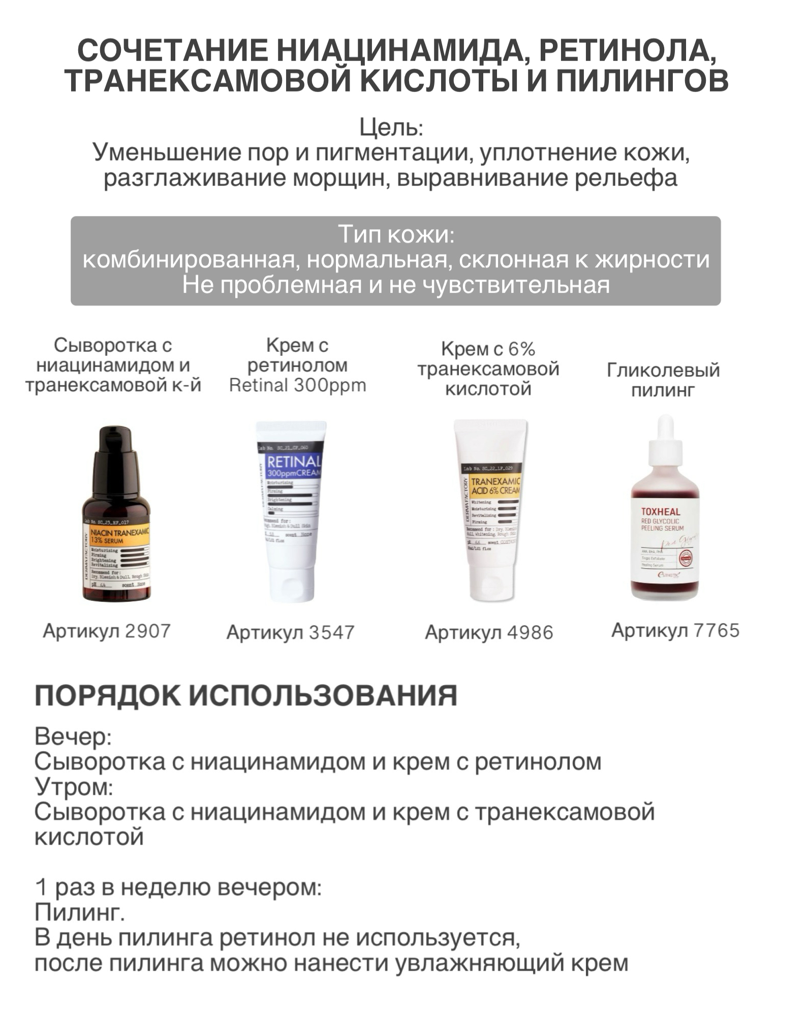 Крем можно использовать как самостоятельно так и в сочетании с ниацинамидом, ретинолом и кислотными пилингами для усиления эффективности